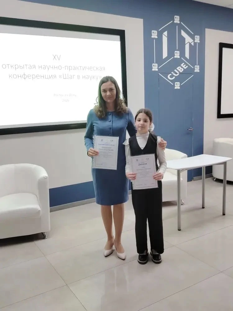 21 марта во Дворце Творчества Детей и Молодёжи состоялась XV открытая научно-практическая конференция «Шаг в науку» спутник Донской академии наук юных исследователей им. Ю. А. Жданова. В конференции приняла участие со своей исследовательской работой ученица 4Б класса нашей школы Прокашева Анжелика.Жюри высоко оценили доклад и вручили Анжелике диплом I степени.