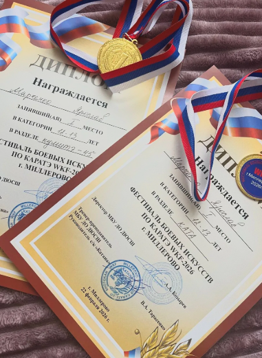 22 февраля прошел Фестиваль боевых искусств по каратэ WKF-2026 г.Миллерово. Марченко Ярослав, ученик 7А класс завоевал два золота в категории ката и кумитэ (-45)