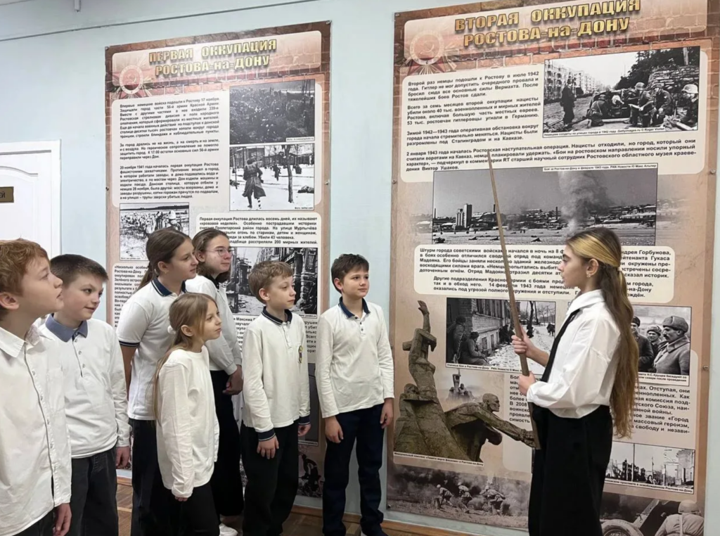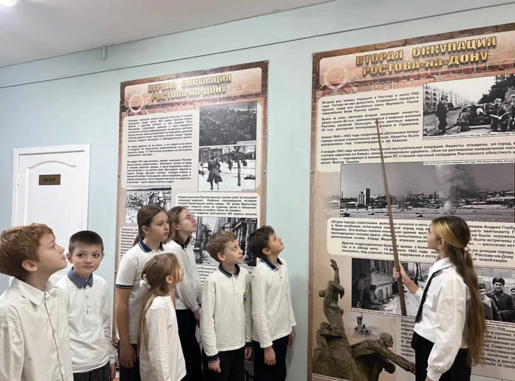 Экскурсовод школьного музея «По страницам истории Великой Отечественной войны» провели экскурсии для учеников школы, рассказав о мужестве и героизме ростовчан, о подвиге простых солдат, освободивших Ростов-на-Дону. Экскурсии были посвящены не только событиям освобождения города, но и жизни его жителей в годы оккупации. Ученики узнали о том, как ростовчане сопротивлялись врагу, о героизме партизан и о том, как трудности войны сплотили людей.