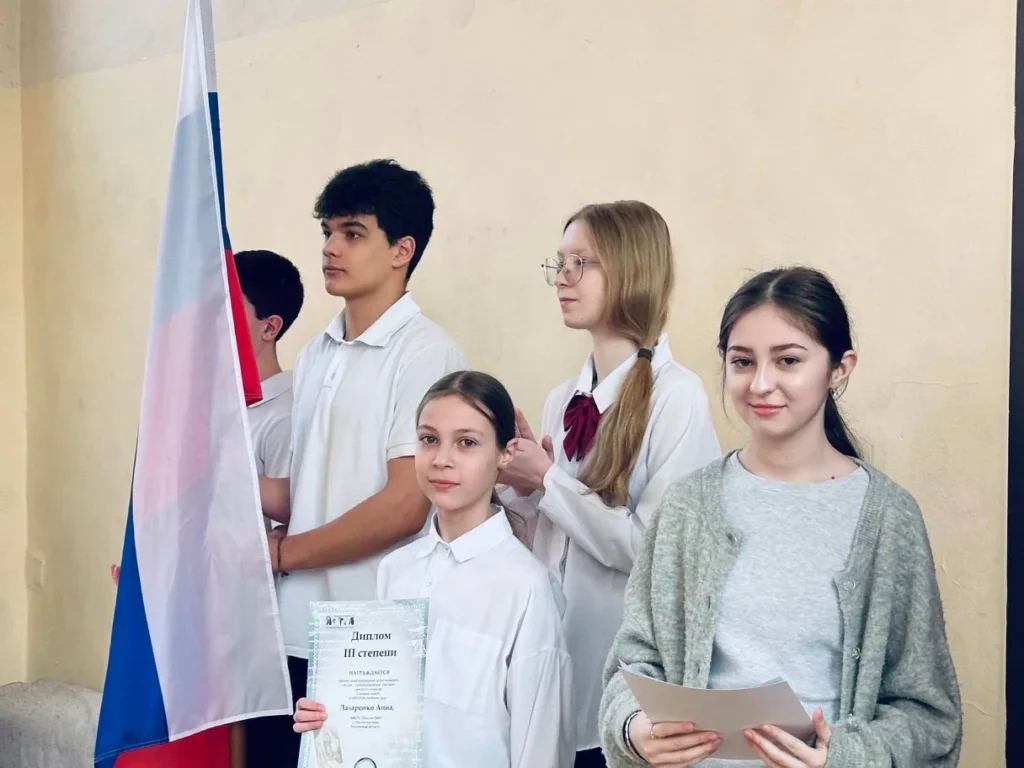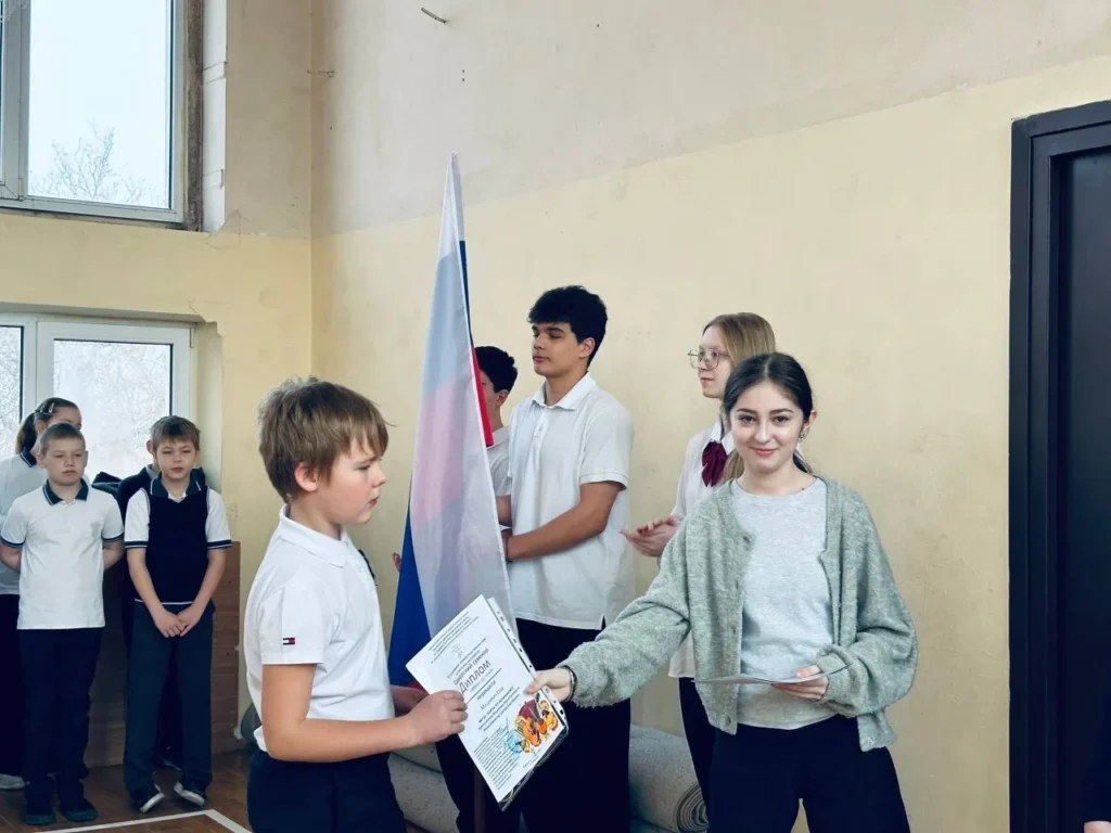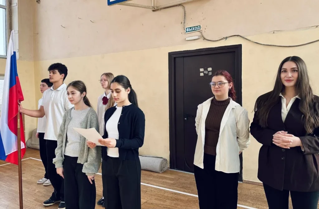 🇷🇺Учащиеся 10 «А» и 11 «А» класса почетно внесли флаг, символизирующий единство, патриотизм и гордость за нашу страну.