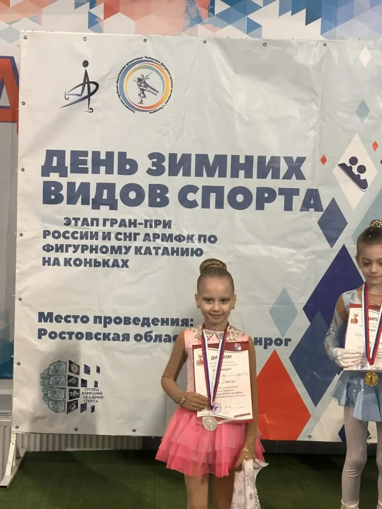 Поздравляем Брюхнову Елизавету, ученицу 1 «А» класса, с замечательным достижением! 🌟 На соревнованиях по фигурному катанию в Таганроге она завоевала почетное 2-е место! 🥈