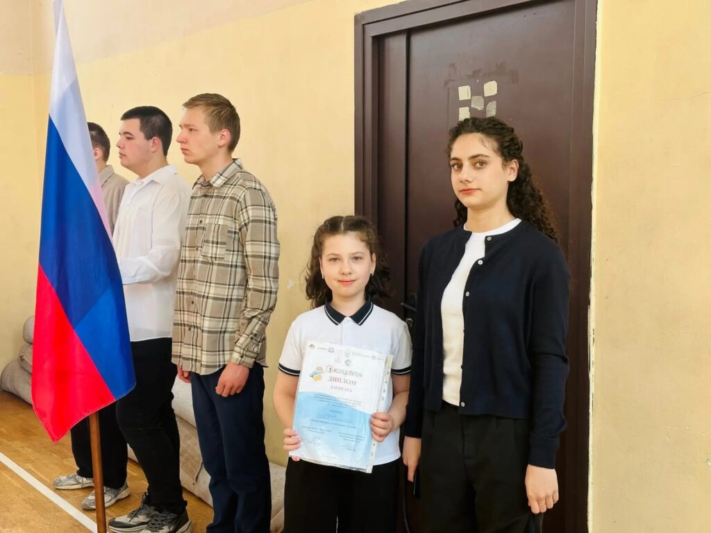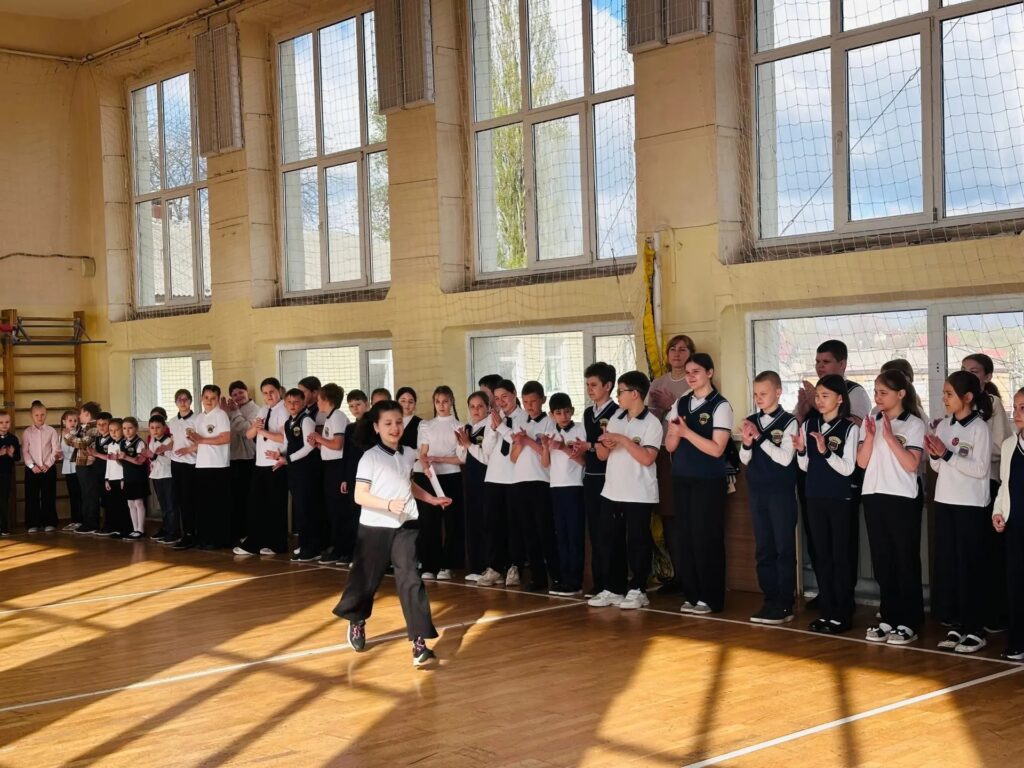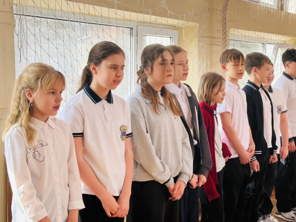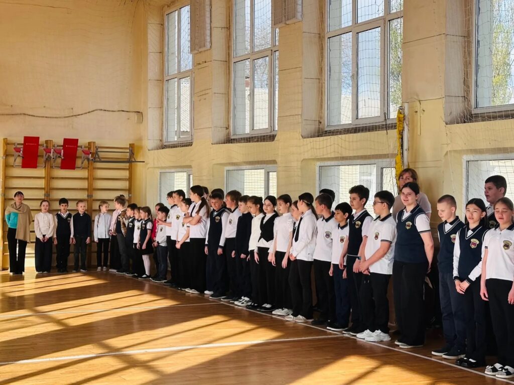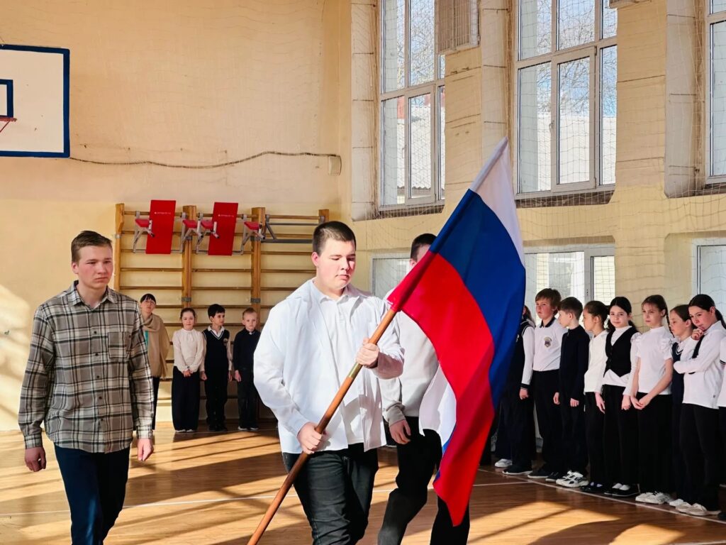 Учащиеся 9 «А» класса почетно внесли флаг, символизирующий единство, патриотизм и гордость за нашу страну.