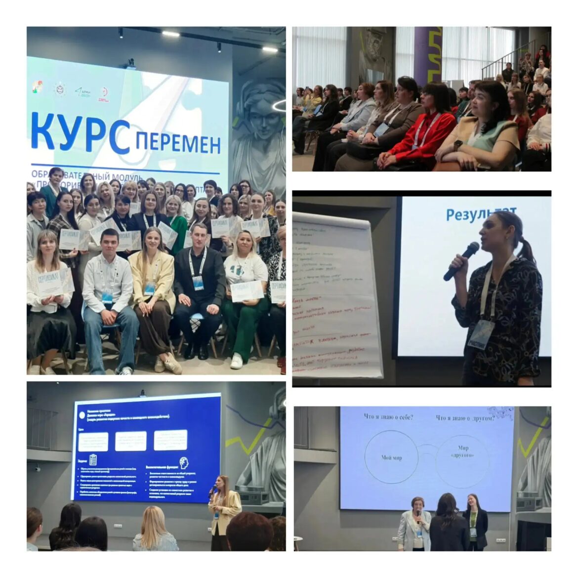 🗓1 апреля 2026 года на площадке молодёжного центра «ДонМолодой» (г. Ростов-на-Дону) состоялось торжественное открытие первого образовательного модуля «Профориентация, социализация и адаптация подростков «группы риска» в рамках областного проекта «Курс перемен». 🤝Педагог- психолог нашей школы, Морозова Екатерина Михайловна, стала участником данного мероприятия. 📉«Курс перемен» — это не просто цикл лекций. Это ответ на реальный запрос времени. Сегодня перед нами стоит задача не просто работать с последствиями девиантного поведения, а предотвращать их, формируя у подростков позитивные жизненные установки». 💡Ключевой практической задачей модуля…